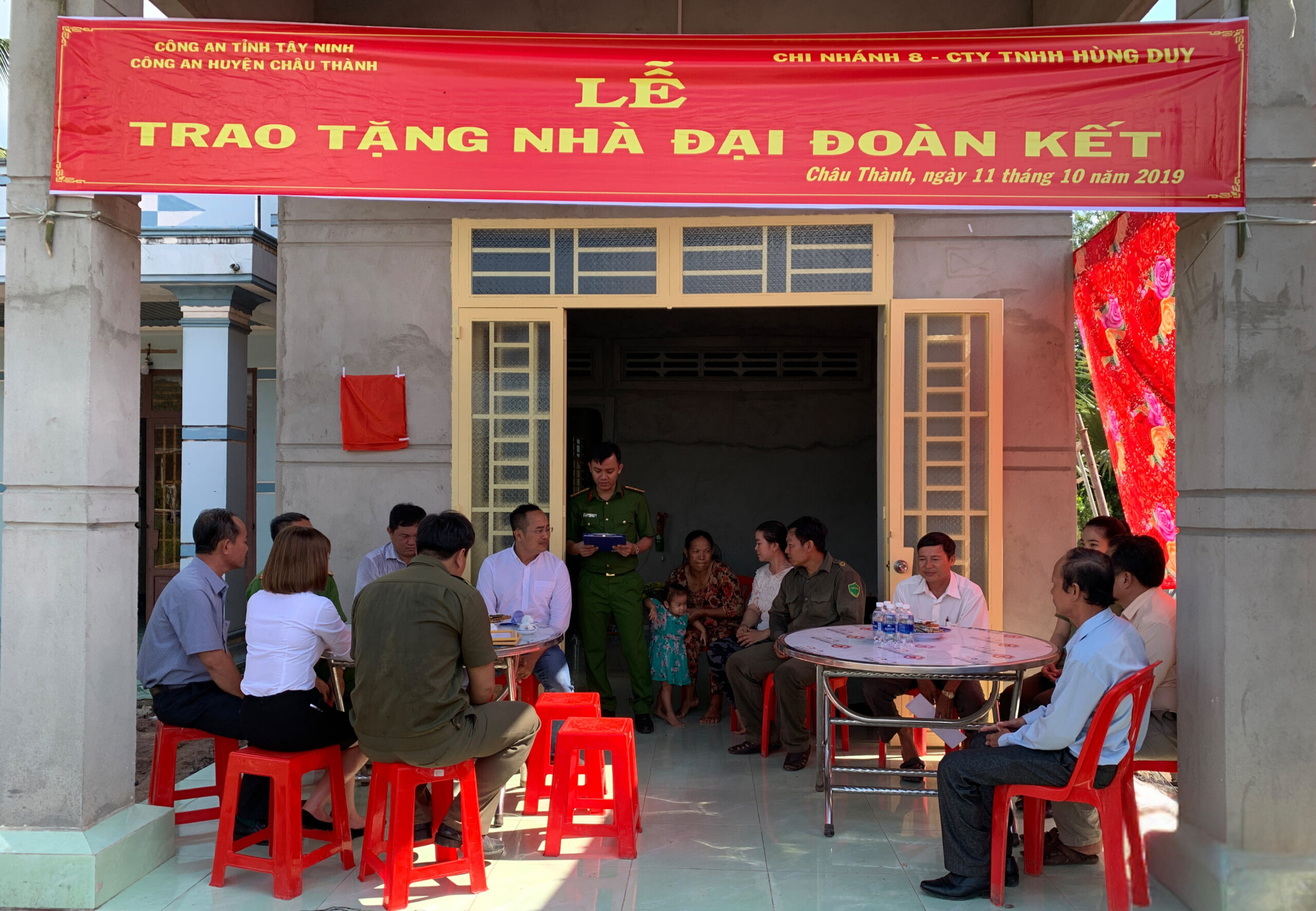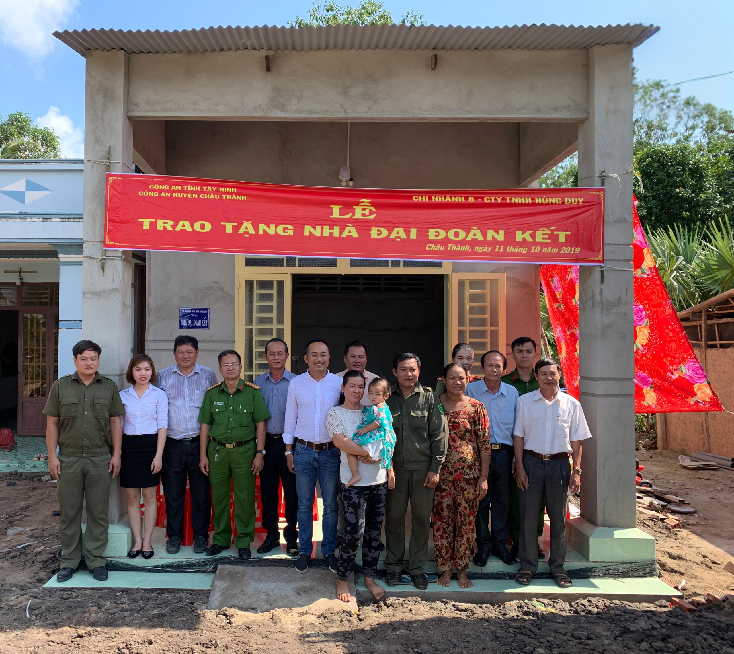 Sáng ngày 11/10/2019, Công an Huyện Châu Thành phối hợp cùng Công ty Hùng Duy tổ chức Lễ Trao nhà Đại Đoàn Kết cho đồng chí Unh Ria – hiện là Công an viên phụ trách ấp Cây Ổi, xã Hòa Thạnh, huyện Châu Thành, tỉnh Tây Ninh.
